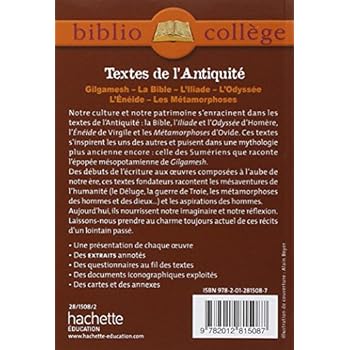 Notre culture et notre patrimoine s’enracinent dans les textes de l’Antiquité. Ces textes s’inspirent les uns des autres et puisent dansune mythologie plus ancienne encore : celle des Sumériens que raconte l’épopée mésopotamienne de Gilgamesh.Des débuts de l’écriture aux oeuvres composées à l’aube de notre ère, ces textes fondateurs racontent les mésaventures de l’humanité et les aspirations des hommes. Aujourd’hui, ils nourrissent notre imaginaire et notre réfl exion. Laissons-nous prendre au charme toujours actuel de ces récits d’un lointain passé.